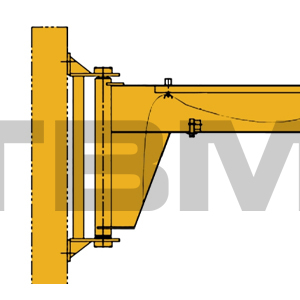 | L'axe d'orientation de la potence à 270° est situé sur deux pattes au-dessus de la colonne. Des roulements de support plan et des bagues en cuivre autolubrifiantes sont installés entre les pattes supérieure et inférieure et l'axe d'orientation. Cela garantit une rotation flexible et amortit le balancement inertiel de la flèche lorsqu'elle s'arrête. Des limites d'angle de pivotement externes sont fournies pour ajuster l'angle de pivotement de la flèche. |