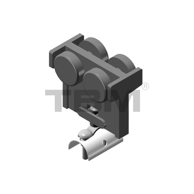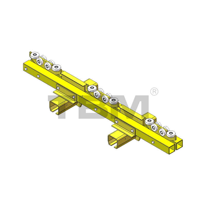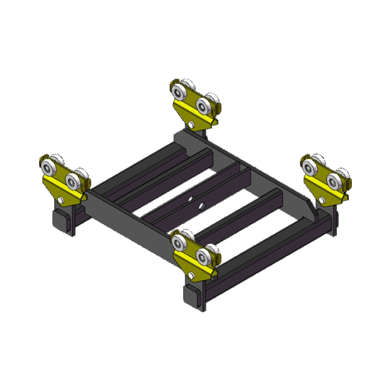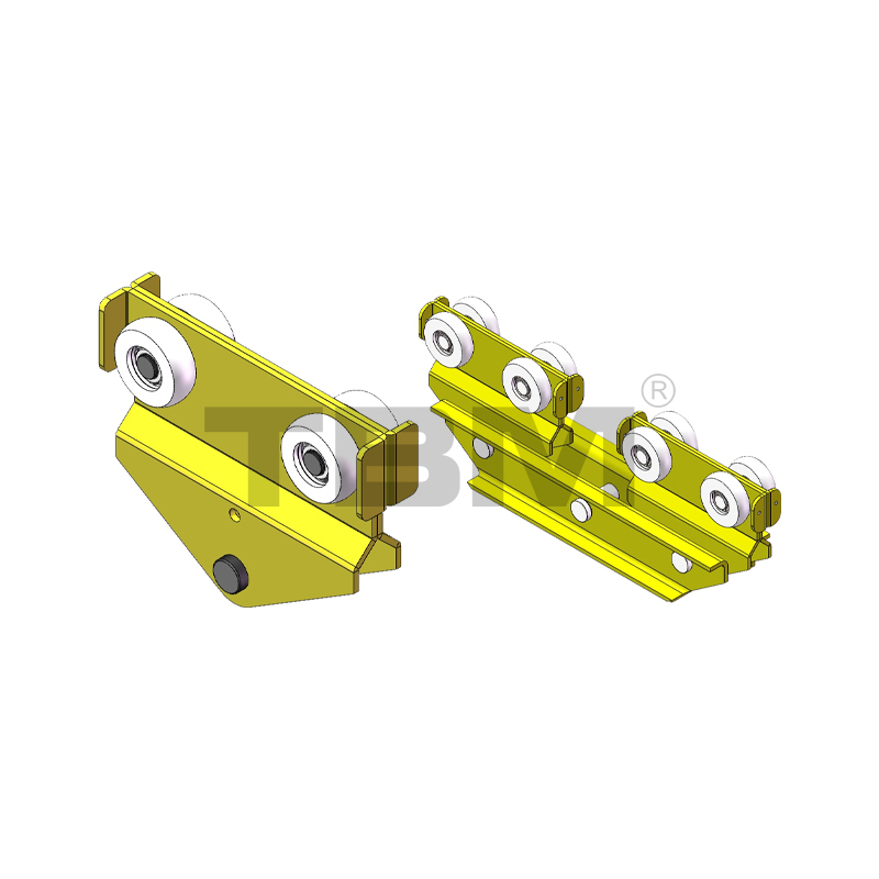 █Le chariot à poutre principale est utilisé pour suspendre des mécanismes de levage, etc. Ses roues sont en nylon haute résistance et ont une pente correspondante, leur permettant de s'adapter à la bande de roulement du rail, garantissant un fonctionnement fluide et un centrage automatique. Les ailes courbées aux deux extrémités empêchent le chariot de tomber accidentellement du rail, garantissant ainsi une sécurité totale.