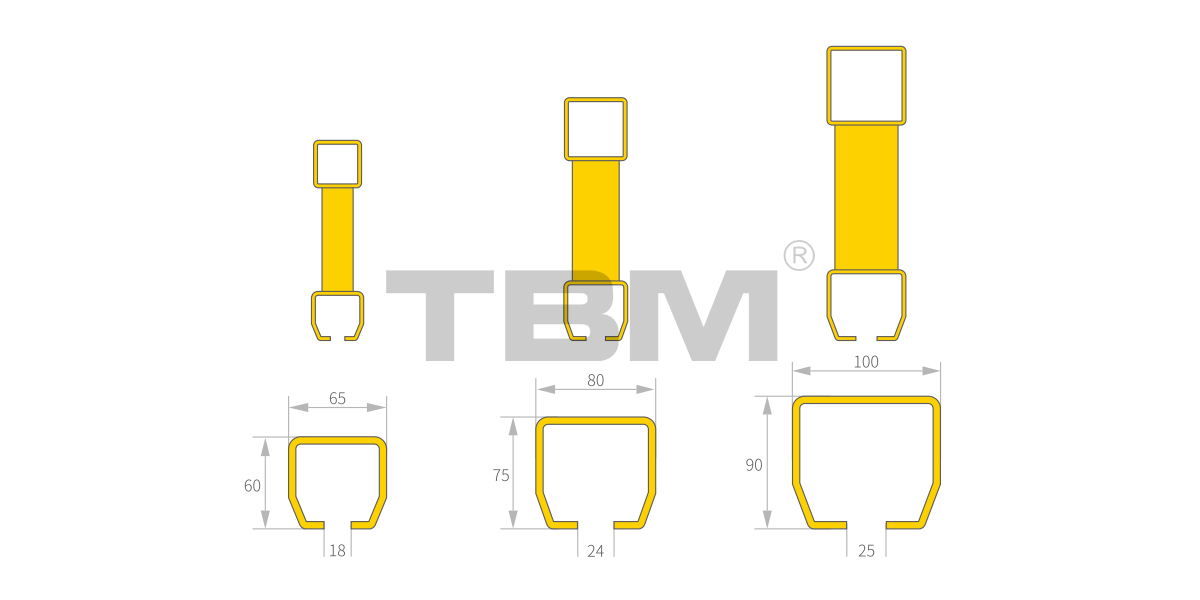| Remarque : les séries 60, 75 et 90 font référence à la hauteur de la section transversale du rail. | ||||